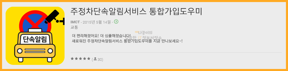 다음과 같이 '주정차단속알림서비스 통합가입도우미' 어플을 다운받으시고 설치하신 후에 위의 과정대로 진행하시면 간단히 등록을 하실 수가 있습니다.
