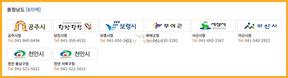 충정남도의 경우 8개 지역 공주시, 당진시, 보령시, 부여군, 서산시, 아산시에서 가능하며 천안도 구로 나누어져 있습니다.