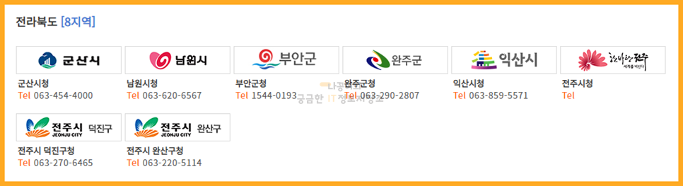 전라북도의 경우 8개 지역 군산시, 남원시, 부안군, 완주군, 익산시, 전주시, 덕진구, 완산구에서 서비스가 가능합니다.