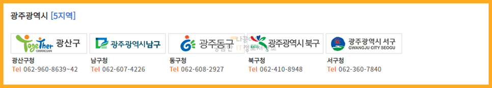 광주광역시의 경우 5개 지역 광산구, 남구, 동구, 북구, 서구에서 서비스가 가능합니다.