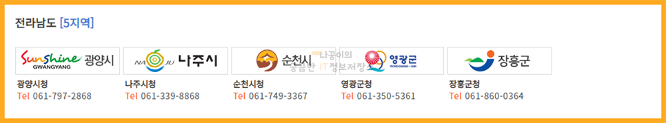 전라남도의 경우 5개 지역 광양시, 나주시, 순천시, 영광군, 장흥군에서 가능합니다.