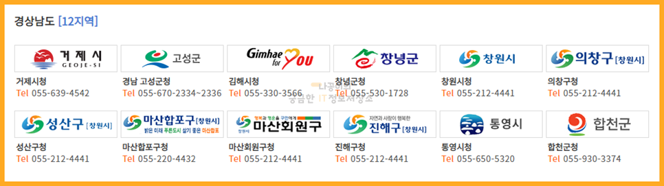 경상남도의 경우 12개 지역 거제시, 고성군, 김해시, 창녕군, 창원시, 통영시, 합천군에서 가능합니다.
