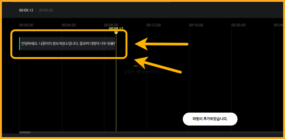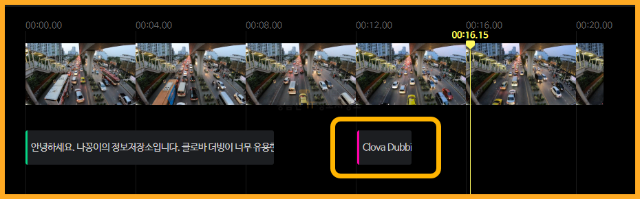 그럼 다음과 같이 아래 화면에 더빙 음성이 추가 된 것을 확인하실 수 있습니다.