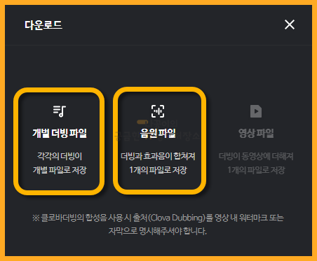 그럼 클로바 더빙을 이용해서 만든 파일들을 다운로드 해보도록 하겠습니다.