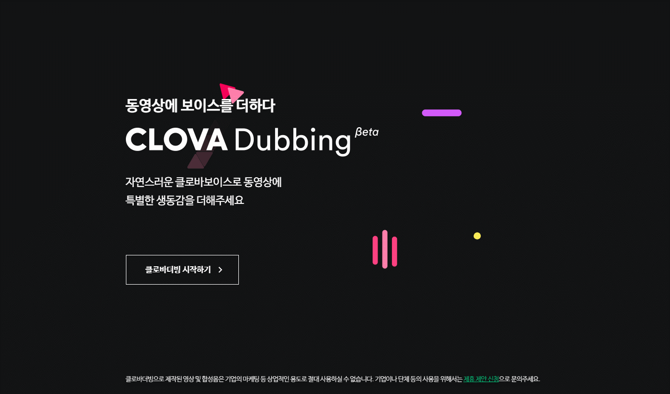 클로바 더빙이란 네이버에서 제공하는 TTS 서비스로 기존의 무료 더빙과는 차원이 다른 자연스러운 목소리를 제공합니다.