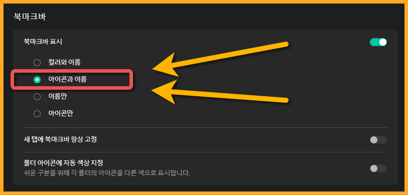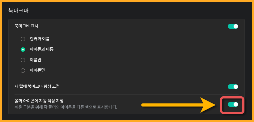 그리고 그 아래에 있는 폴더 아이콘 색상 지정을 클릭해보시면 아름다운(?) 북마크 폴더를 보실 수 있습니다.