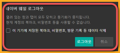 여기에서 마무리했으면 좋았겠지만 네이버 웨일 북마크 가져오기의 가장 큰 단점은 동기화가 반드시 필요하다는 것입니다. 로그인을 안하면 위에서 했던 것처럼 북마크를 사용할 수 없습니다.