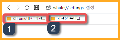 1번은 크롬에서 가져온 것이고, 2번은 HTML로 가져온 것입니다. 둘 다 폴더에 저장이 되기 때문에 북마크를 많이 활용하시는 분들에게는 아주 불편합니다.