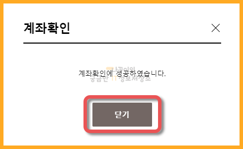 계좌확인이 정상적으로 완료되면 다음과 같은 팝업창이 나타납니다.