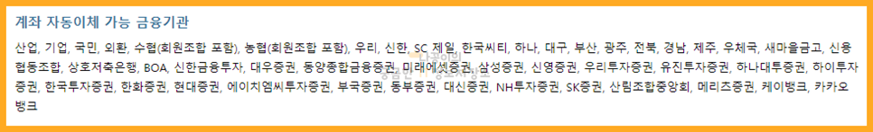 계좌 자동이체가 가능한 금융기관은 거의 모든 금융기관이 포함됩니다.