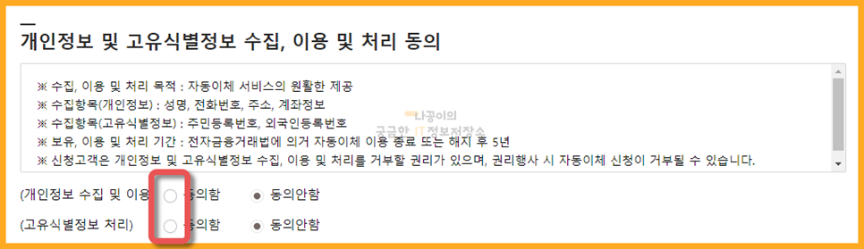 그 아래쪽에 체크하는 부분에 모두 동의함으로 체크를 해주시기 바랍니다.