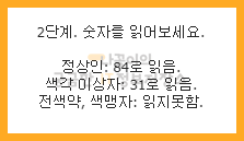 학교에서 검사할 때는 이게 검사가 되는 것인지 의문이었는데 진짜로 숫자가 안보인다고 하는 사람을 보고 신기했던 기억이 있네요.