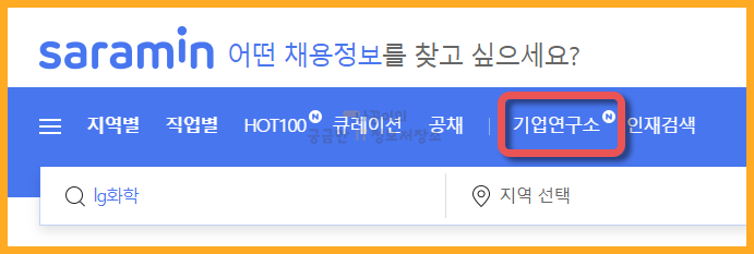 사람인 사이트 제일 상단의 메뉴에 보시면 기업연구소라는 것이 있습니다.