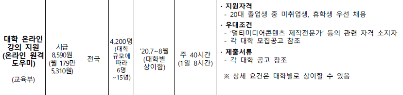 1. 대학 온라인 강의 지원(온라인 원격 도우미) - 교육부
