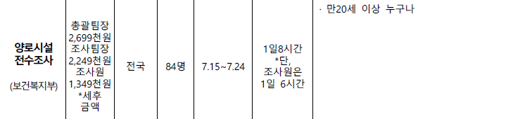 -급여수준 : 총괄팀장 2,699천원 조사팀장 2,249천원 조사원 1,349천원*세후 금액
