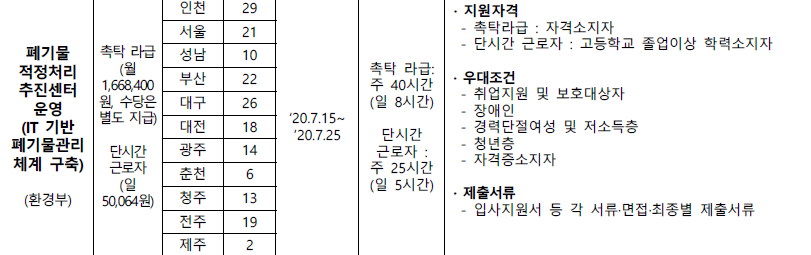 일일히 확인해보실 시간이 없으신 분들은 간략하게 정리된 아래 내용을 참고하시고, 각 지역 또는 일자리 종류에 따라 자세하게 보고 싶으신 분은 제일 아래에 공지된 문서를 첨부해 두었으니 참고해주시기 바랍니다.