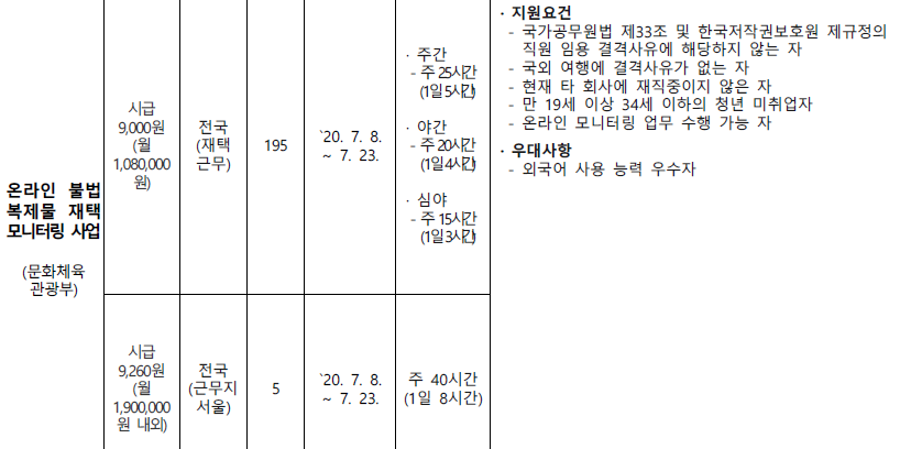6. 온라인 불법 복제물 재택 모니터링 사업(재택 기준) - 문화체육 관광부