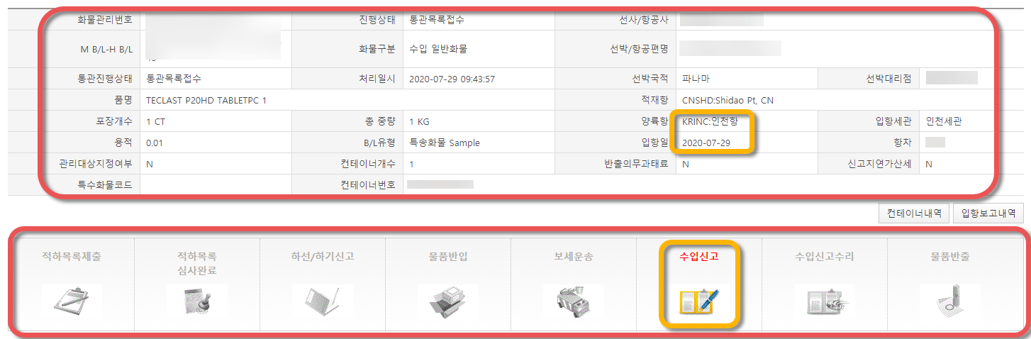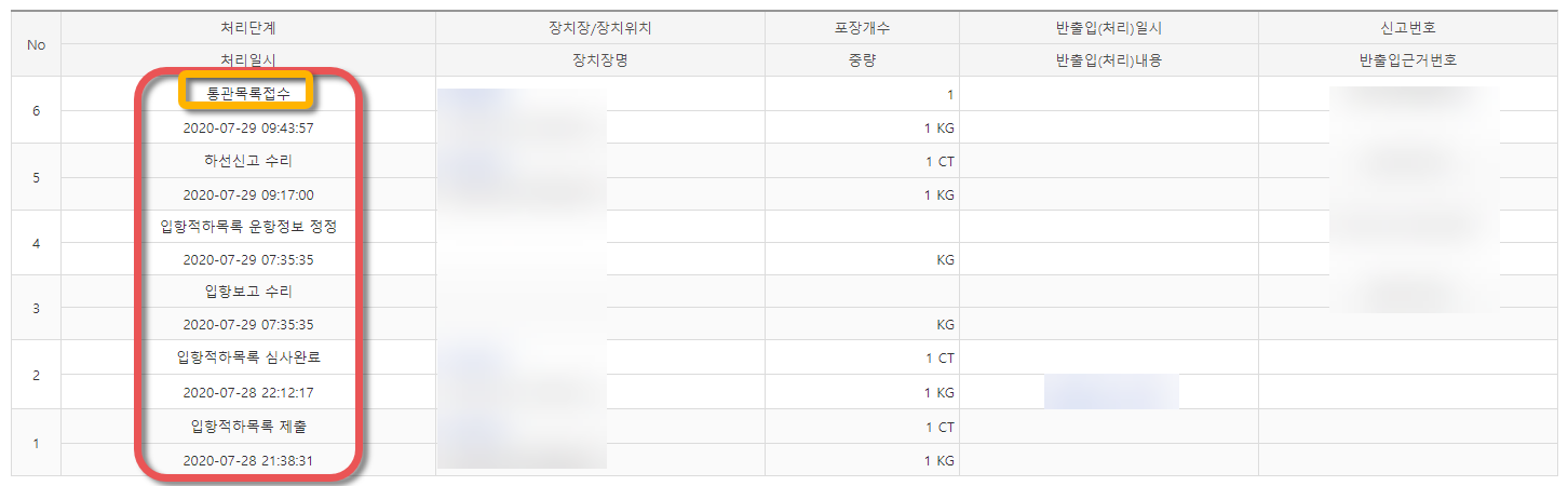 그럼 다음과 같이 현재 내 택배 위치를 확인하실 수 있으며 통관과정 중에 어떤 절차를 밟고 있는지 확인하실 수 있습니다. 저의 경우에는 7월 29일에 입항해서 현재 통관목록접수가 되어 있는 상태이고, 이 과정이 지나고 수입신고가 수리되면 택배회사로 물건이 전달되고 제가 받을 수 있게 되는 것입니다.
