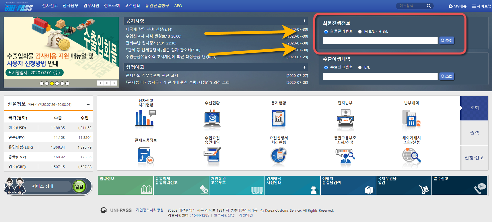 이미 직구를 많이 해보신 분이라면 많이 알고 계시겠지만 한국 세관에 들어오게 된 물건은 통관이라는 단계를 거치게 됩니다. 위에서 언급한대로 미등록운송장이 나오신 경우에는 이미 우리나라에 들어와 있는 것이기 때문에 유니패스라는 곳에서 확인이 가능합니다.