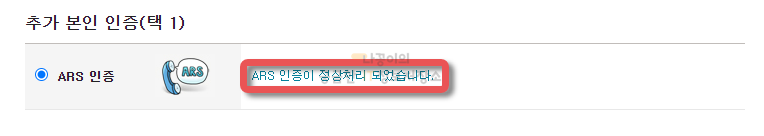 인증이 완료되셨다면 아래와 같이 ARS 인증이 정상처리 되었다는 메세지가 나옵니다.