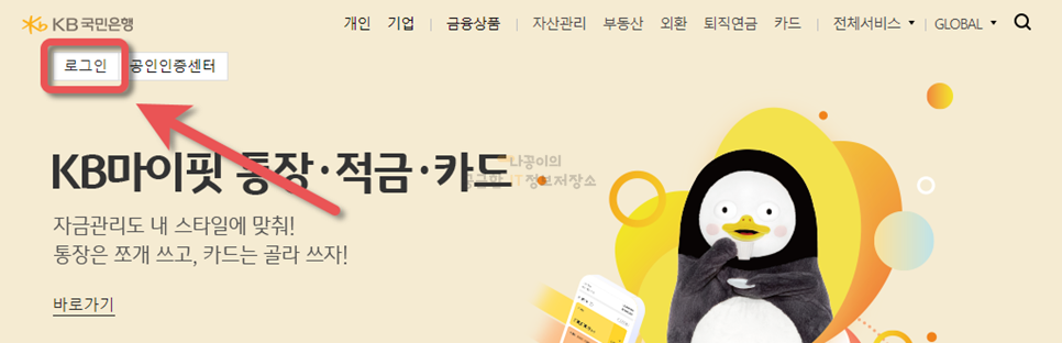 로그인을 할 수 있는 방법은 여러가지가 있지만 다음과 같이 공인인증서 로그인을 추천합니다.