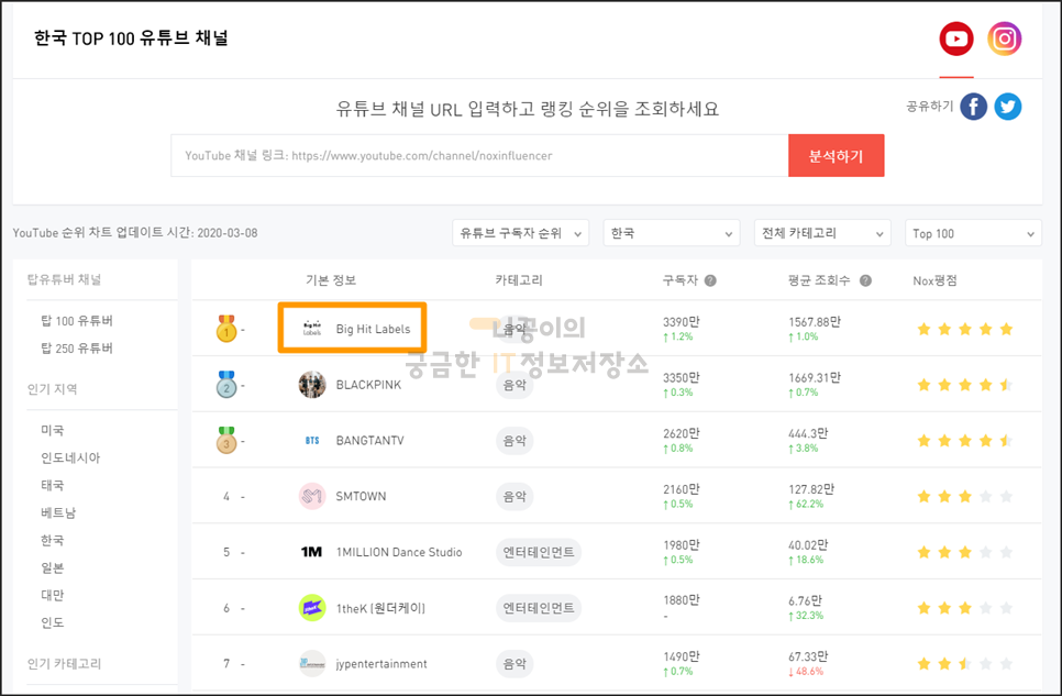 NoxInfluencer,녹스 인플루언서,유튜브 수익,유튜브 구독자 순위,유튜브 마케팅,MCN,유튜브 광고,1인방송,인플루언서,유튜브 광고,크리에이터,유튜브 순위,태그,인스타그램