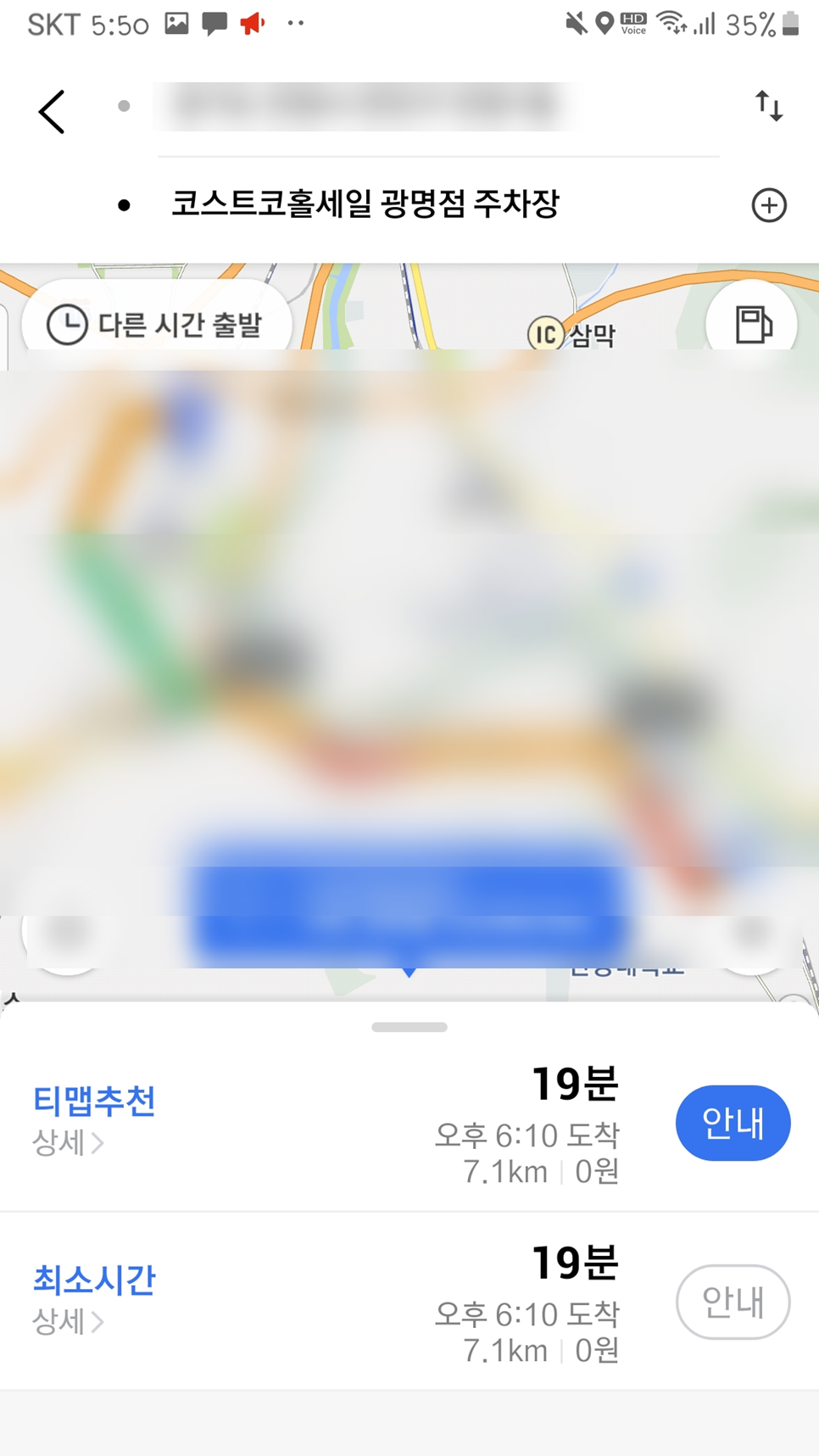 업데이트가 완료된 후에 앱을 실행해서 목적지를 검색하면 다음과 같이 나옵니다.
