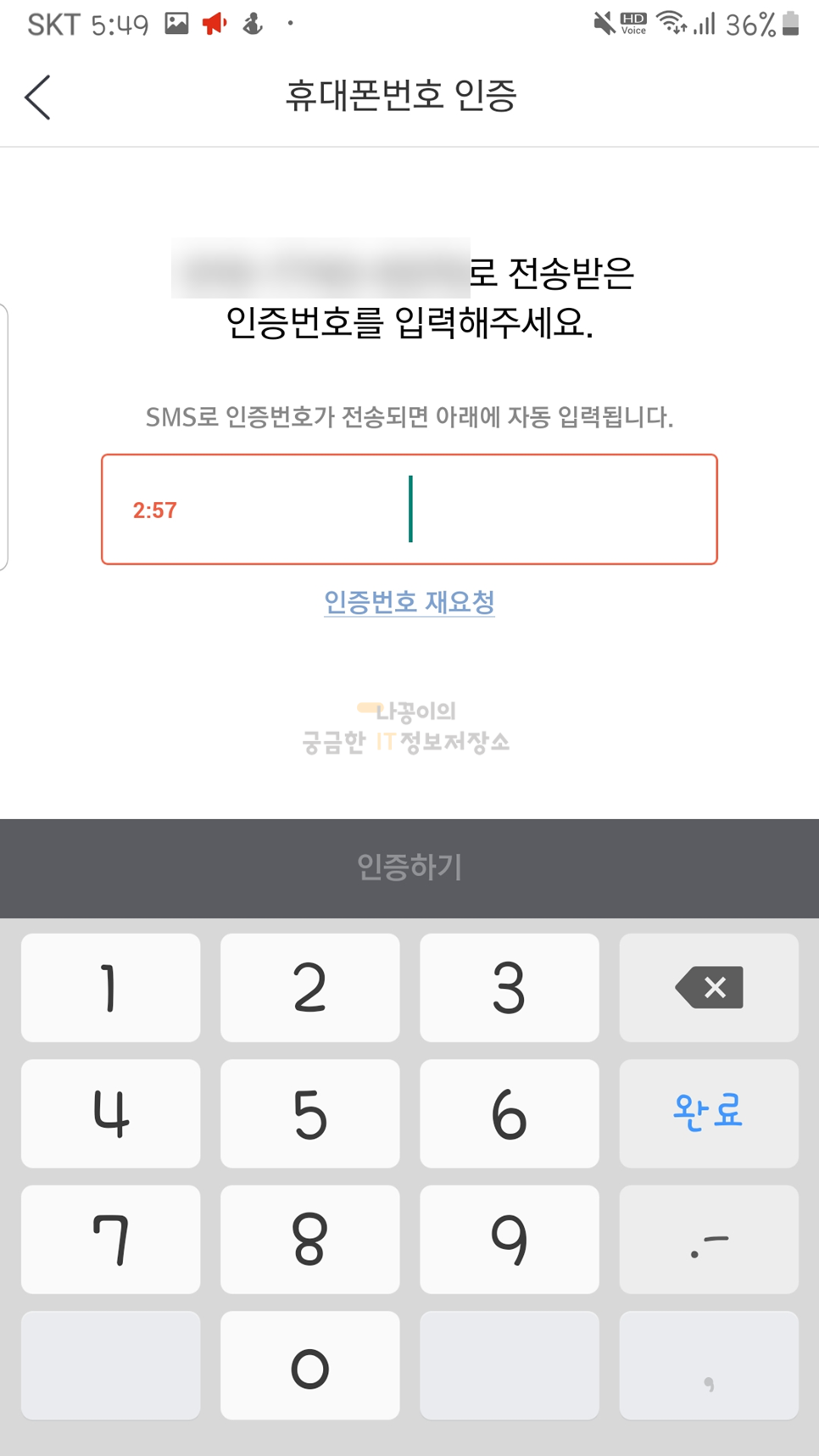 저는 간편하게 휴대폰 인증을 선택했습니다.
