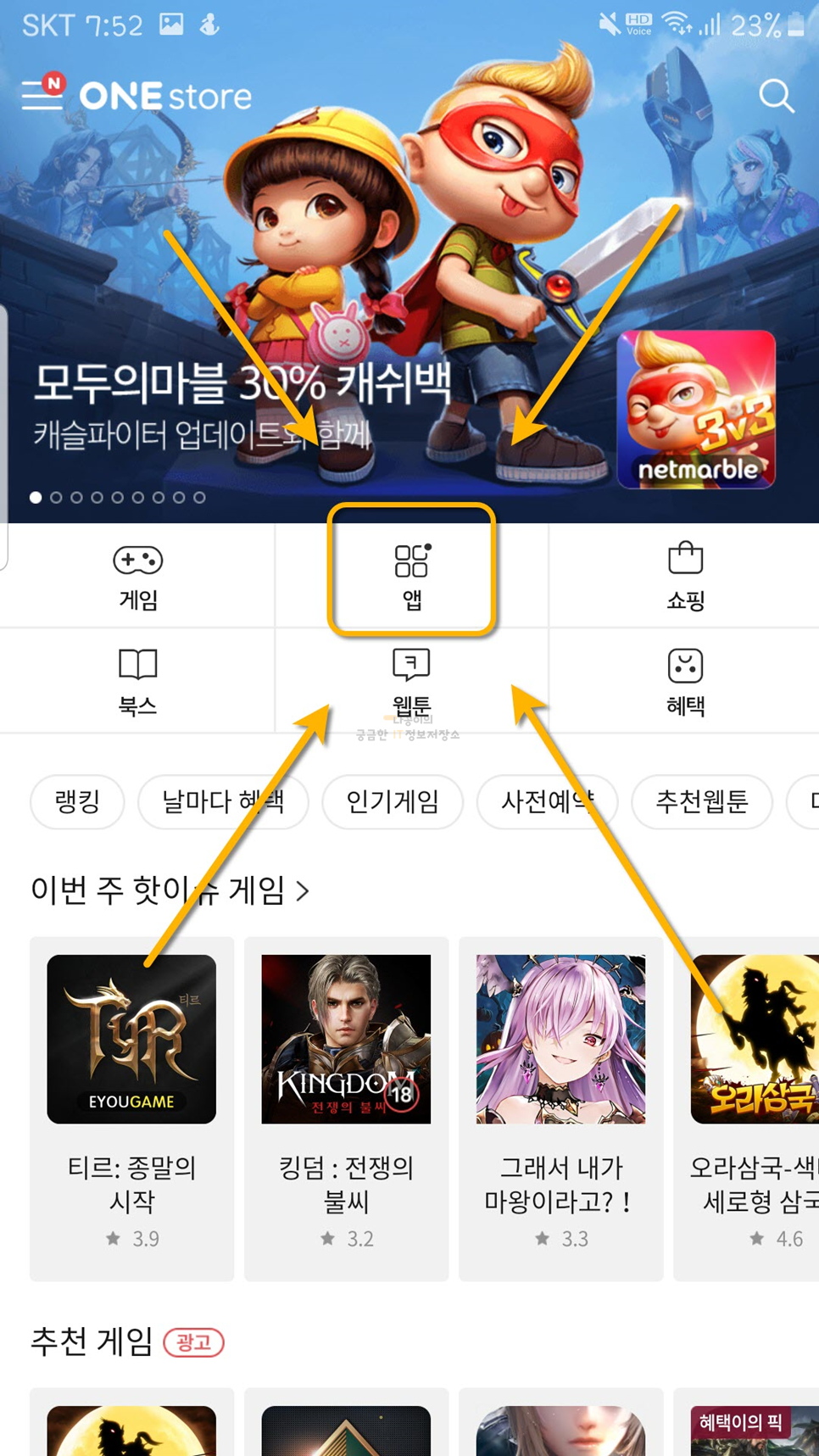 이 때는 원스토어 말고도 플레이스토어에서도 설치 및 업데이트가 가능합니다.