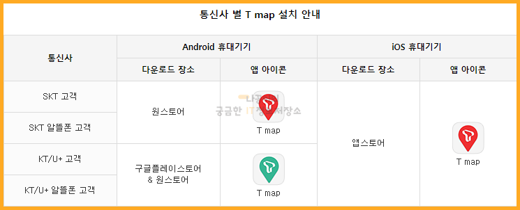 KT와 U+ 통신사를 이용해도 티맵을 설치할 수 있습니다.