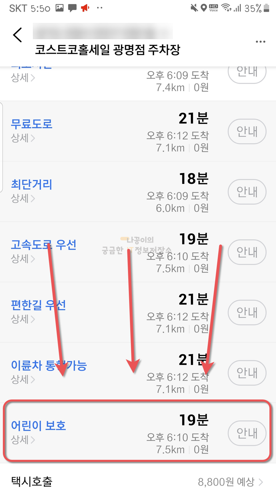 저는 4월부터는 어린이보호구역 경로를 최우선으로 해두고 쓰고 있습니다.