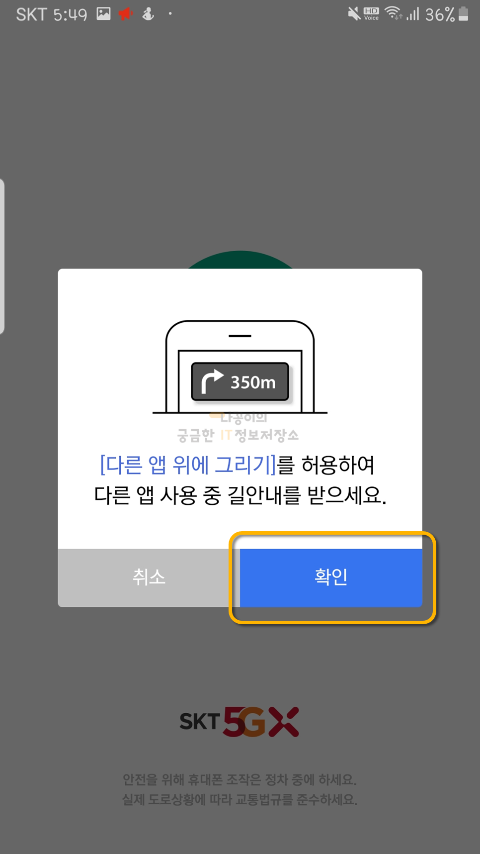 또한 아래의 것은 다른 앱을 실행중일 때 최소화되어 계속 안내되는 진행을 볼 수 있는 것을 선택하는 것으로, 필요하시다면 권한 허용을 진행해주시기 바랍니다.
